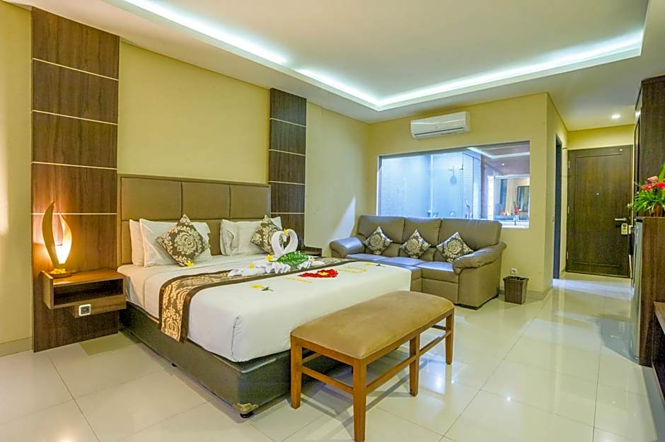 Offering a direct access to the pool, this room is equipped with a flat-screen satellite TV, mini-bar and tea/coffee-making facilities. Guests can relax in the seating area or on the private terrace overlooking the pool.